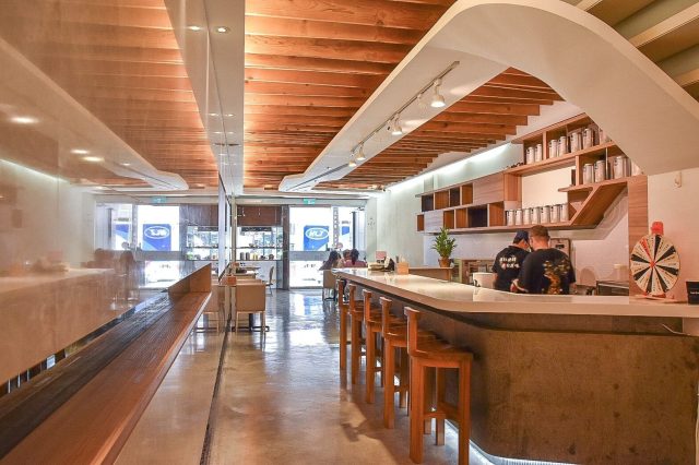 「湯鶴」的室內空間,以木作建材呈現流線型的設計,融合中式傳統及現代風格,讓人眼睛為之一亮!