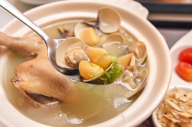 蒜頭蛤蠣雞湯裡有滿滿的蒜頭和蛤蠣,喜歡那蒜頭燉到鬆軟綿密,蛤蠣和蒜頭真是絕配!