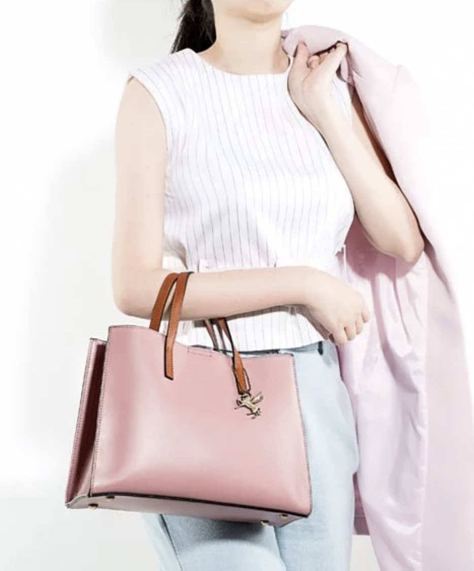 不知道草莓牛奶色怎麼挑選?Pepper's這款柔嫩女人味十足的玫瑰粉軟牛皮提包,上街回頭率真的很高,容量也超夠裝,上身無論是搭配紫丁色的外套或是簡單率性的白色西裝都超適合唷!