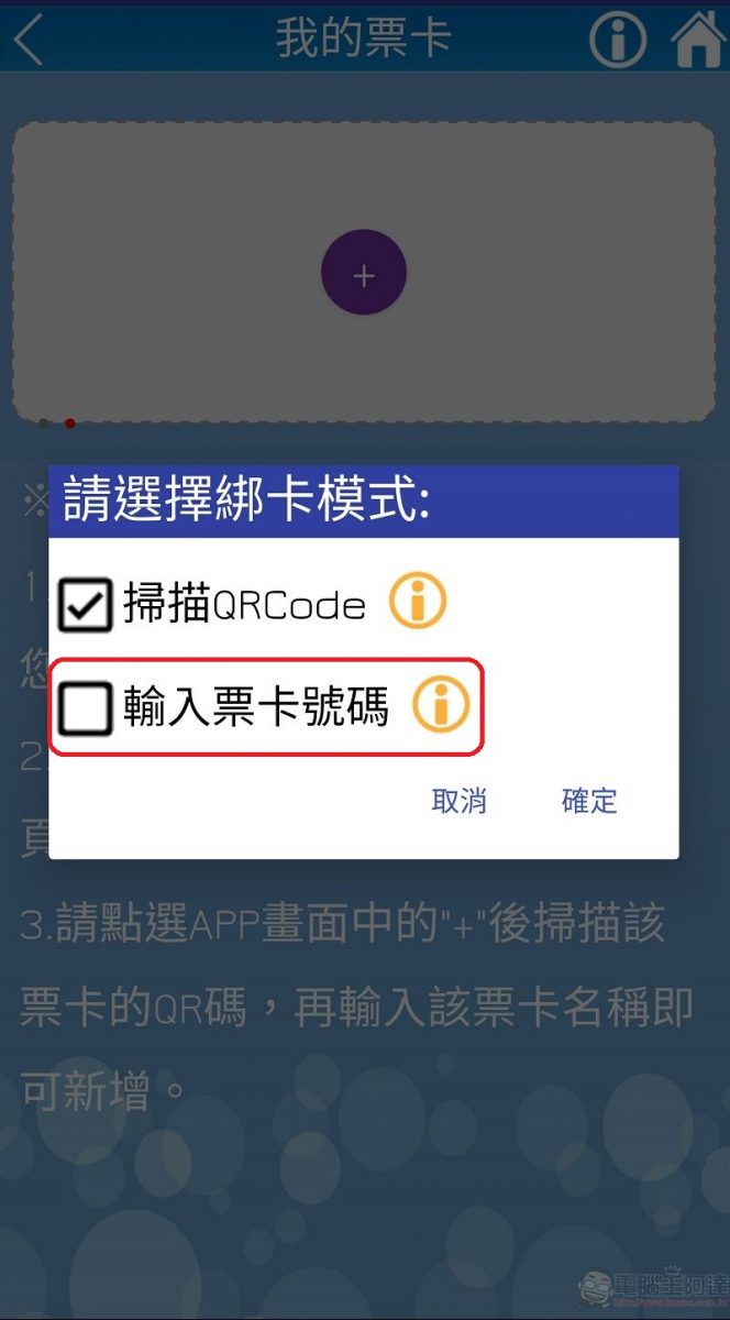 接著會要你選擇綁定的方式,預設為「掃描QRCode」,我們這邊要介紹的則是「輸入票卡」的方式,因此勾選「輸入票卡號碼」: