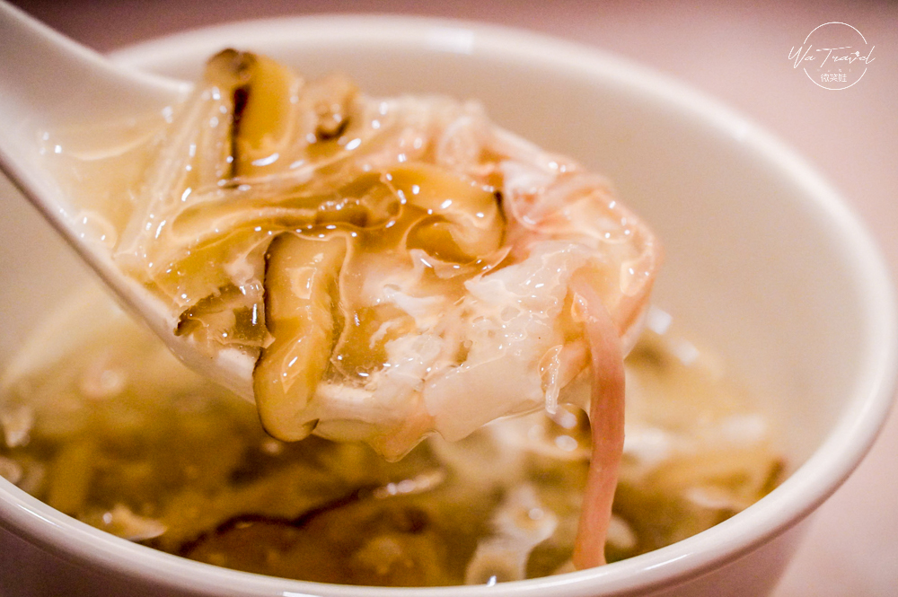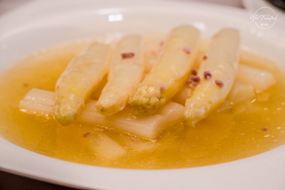 對愛吃蘆筍的我,這一道白蘆筍更是為其稀有,點水樓是找了雲林土庫小農契作的白蘆筍料理,屬於點水樓的春季菜色,點水樓的高湯都是使用細心熬煮的老母雞湯,讓呈金黃色澤的雞湯熬底,讓白蘆筍吸收雞湯香氣搭配金華火腿,帶有豐富的鹹香特殊氣味,讓這道佳餚在我心目中有了一定的地位。
