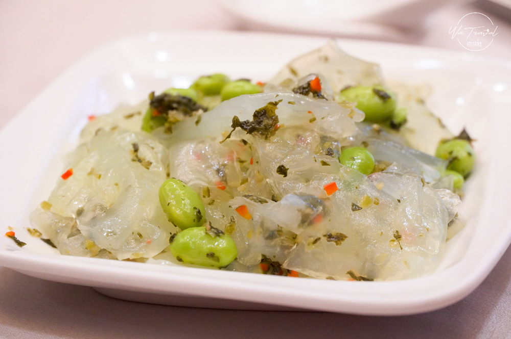 老鹹菜拌粉皮是江浙菜盆菜的經典之作,主要使用自製的老鹹菜搭配Q軟的粉皮製作成的涼菜,很適合春季吃開胃的一道料理,晶瑩剔透的粉皮增加了爽口滋味。