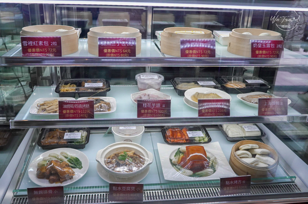 門口前方也設置一專區,專打黑蒜特餐餐盒跟巨無霸蘿蔔絲酥餅,從旁邊走過都會被他的香氣彌留,點水樓的店中店,位於入口右手邊規劃一整個專區冰櫃陳列專區,可看到冰櫃內有完整個菜盤原本擺設根外帶時的真實樣貌,方便提供點水樓外帶跟帶回料理後裝盤擺設構思,可以用微波爐來微波加熱或是電鍋加熱都非常方便。