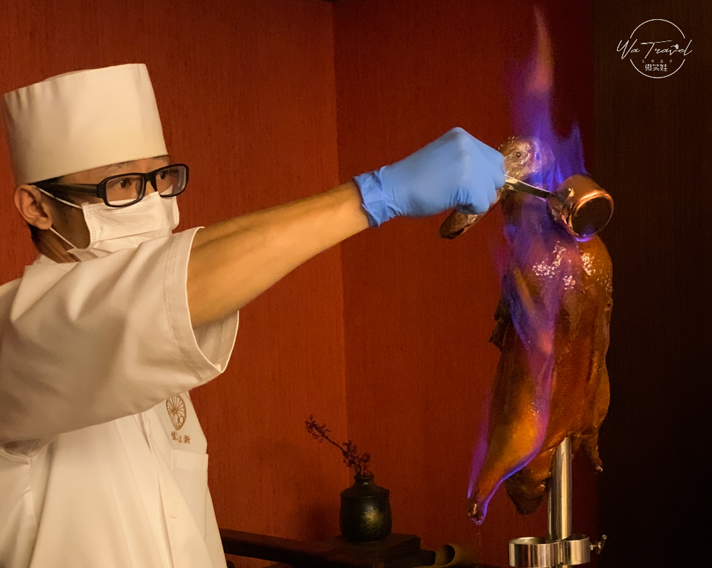 │火焰烤鴨上菜時會有銅鑼敲響,讓人有一種隆重感,一種生活儀式感