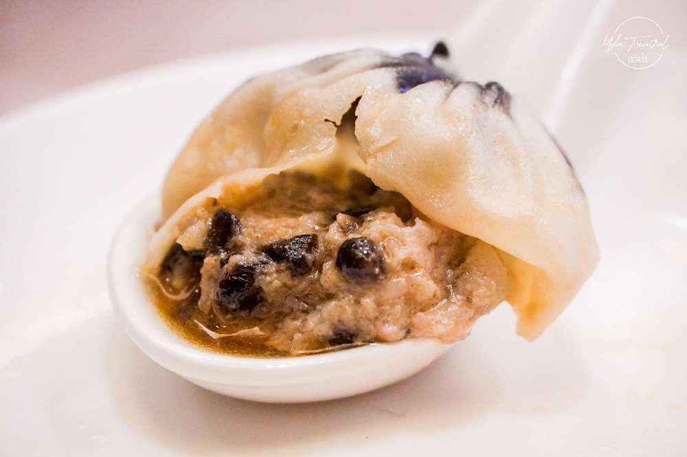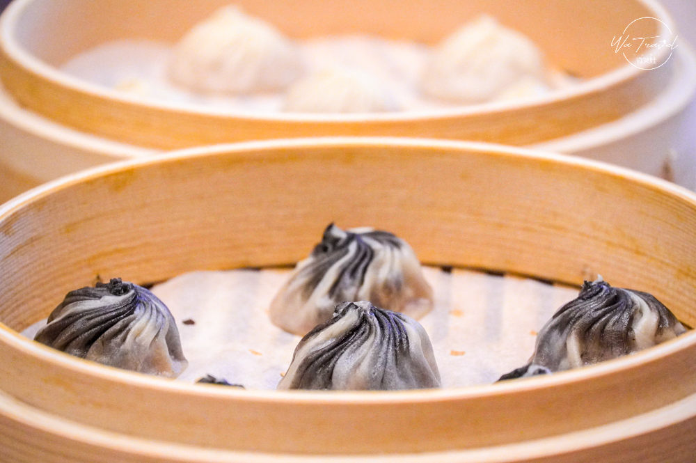 黑蒜小籠包口味特別,黑色外皮是天然墨魚汁自然調色並非添加色素,這道料理更可以說是現在的防疫料理,黑蒜直接都融入整個小籠湯包中,有濃郁的蒜香味,咬下口卻不會有嗆鼻味,而隨之是一點自然的蒜化開甜味,令人感到驚喜的口味,這是第一次吃到這麼豐富口感又特別的小籠包,很推薦來到點水樓必點試試看。
