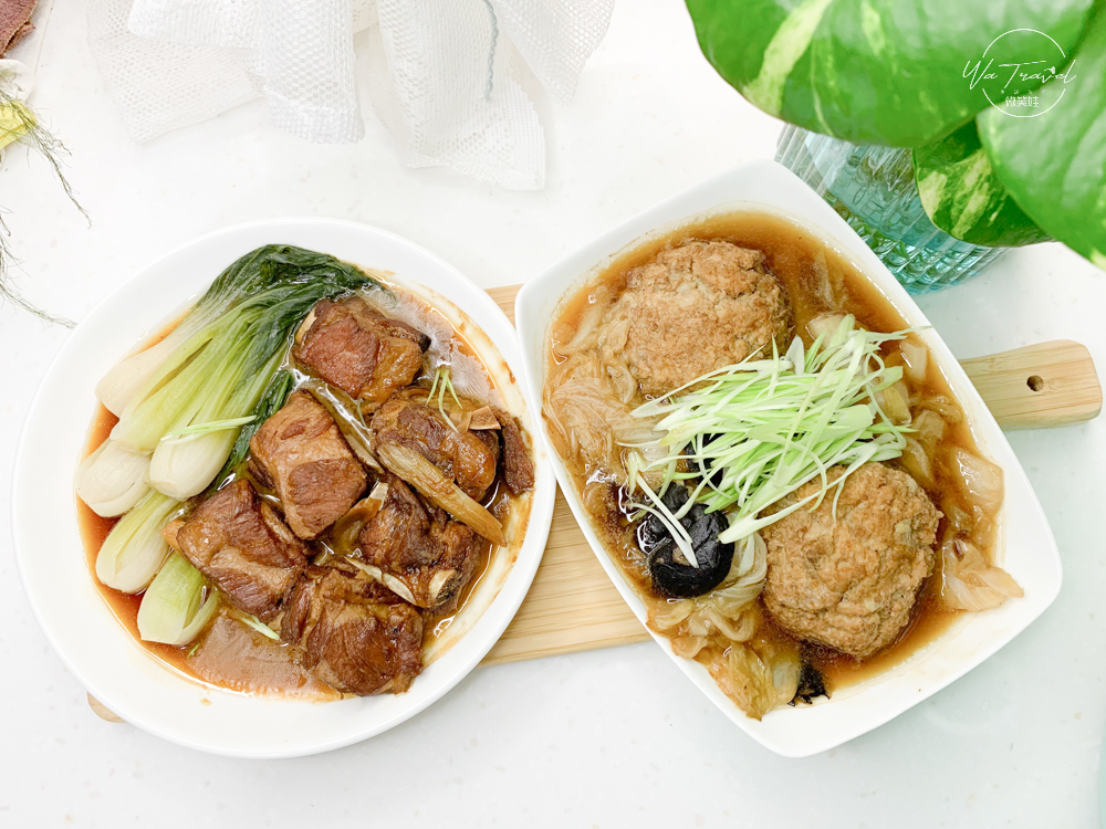 因為微笑娃沒有微波爐,因此是使用電鍋加熱,也超方便,我是兩道菜一起蒸,中間用筷子當媒介,大約10分鐘內就好了,電鍋跳起來後就可以直接享用,當天在店中店有先看盤裝裝飾,回來後有一個概念知道大約要怎麼裝盤,所以是【先裝盤】【加熱】【吃飯囉】