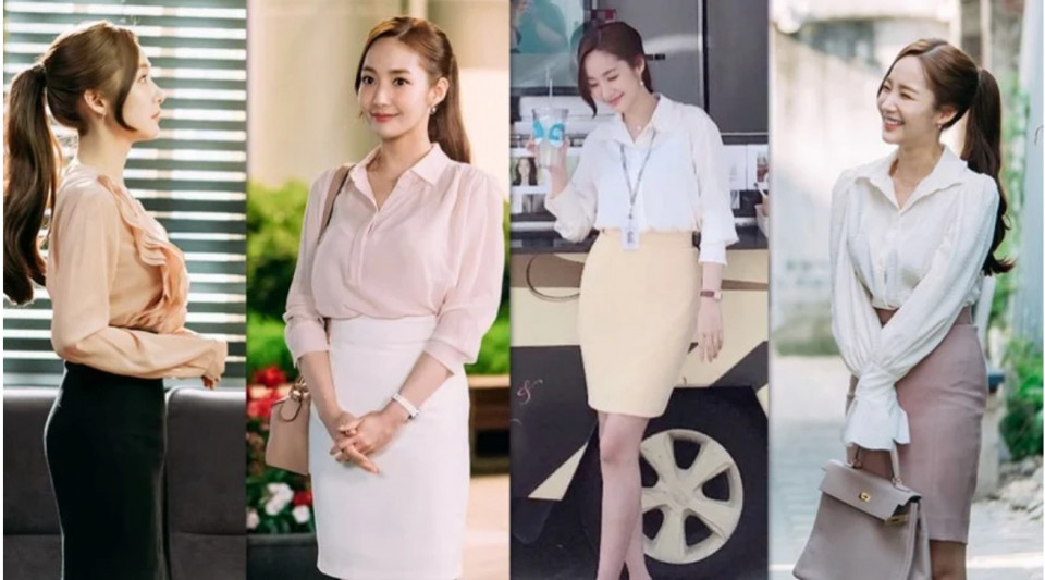 上班族襯衫配裙子,怎麼穿才不會老氣像大嬸?孫藝珍、金秘書來解答!首先,顏色的選擇是關鍵!仔細觀察過去金秘書的穿搭,顏色單純不複雜、都是大色塊,且不超過兩色。這樣不會讓視覺焦點模糊,看起來胖又混亂。