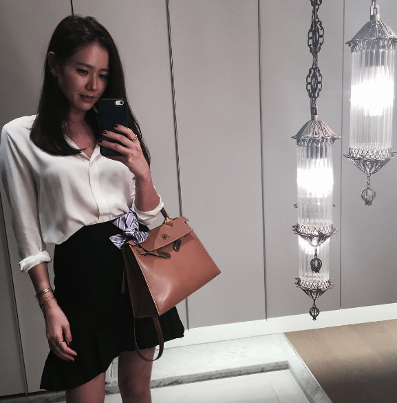 而朴敏英的襯衫就相對更不挑年紀好駕馭了!極簡的白襯衫上做了荷葉邊設計,簡單大方又不失女人味。