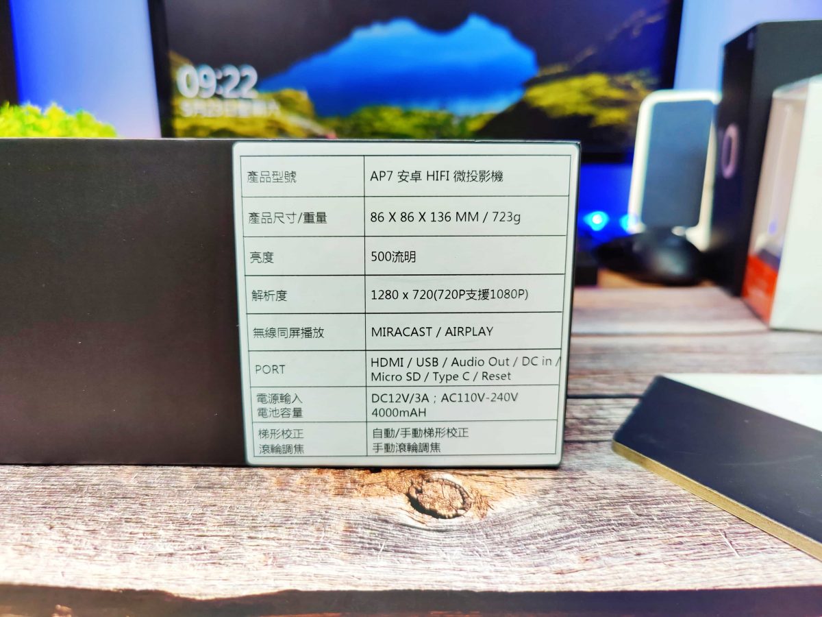重量表現相當優異,那對於空間要求的體積上,是否也一樣優秀呢?投影機三圍為 86 x 86 x 136 (mm) ,其實筆者拿到 WONDERMAX AP7 當下是有些疑惑的,對於體積這麼小的投影機,真的能達到我的需求嗎?不過經筆者長時間的使用下,可以很放心的說:「 絕對沒問題。」