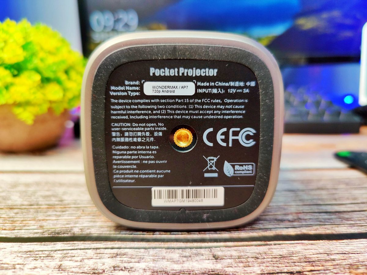 「 WONDERMAX AP7 投影機 」便攜的設計,只要簡單放置在平整的桌面上即可播放檔案,筆者使用一段時間下來認為比較可惜的部分在於鏡頭無法上下調整,因此若桌面低於投影布幕最底部,必須將 WONDERMAX AP7 墊高才能使用。