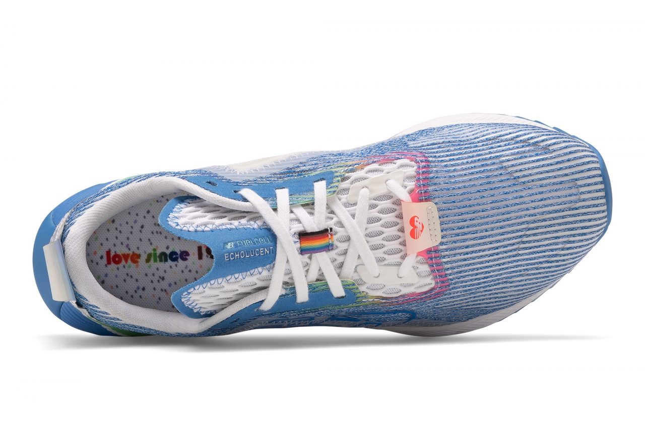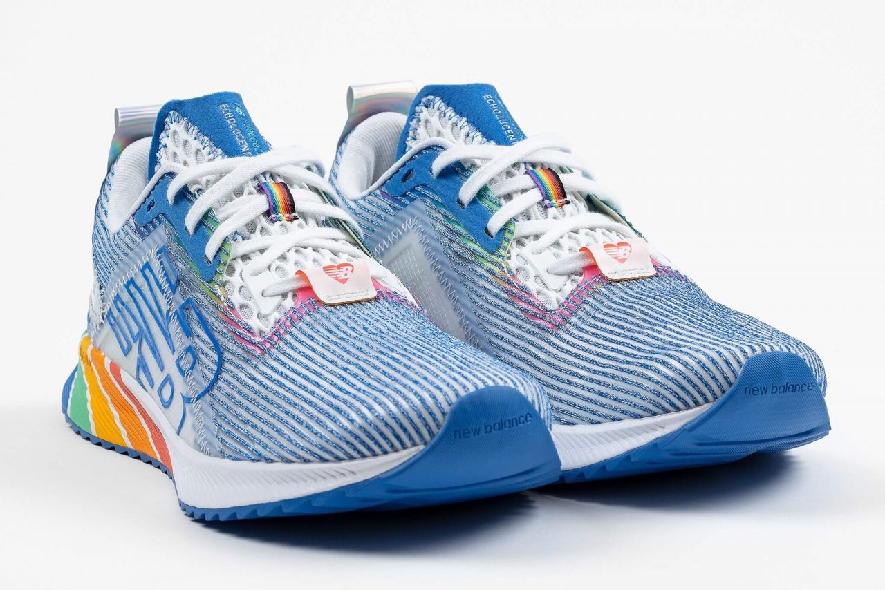 在 Performance 專業運動鞋款方面,FUELCELL ECHO LUCENT 鞋身以藍色為主視覺,鞋側拼接可透視網布並加上 NB 簍空 Logo,中底印有繽紛彩虹條紋點綴,鞋舌同樣繡有愛心 NB Logo,彰顯其意義。臺灣定價 3,280 元。