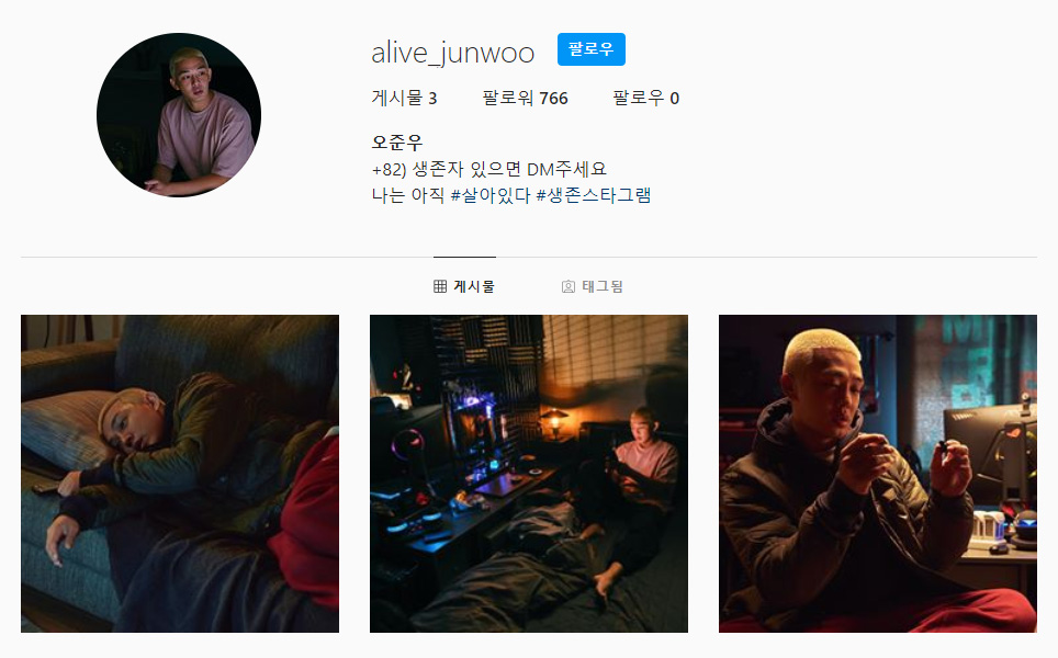 電影公司還在IG上創造主角「吳俊宇」的帳號,希望粉絲能為自己喜歡的主角打氣,同時也為新電影《ALIVE》宣傳一波!海報上的字樣寫著:「#大韓民國首爾、#AM06:24、#斷網」,《ALIVE》韓國預計將在6月上映,台灣目前則未定,有興趣的朋友可要再等等啦!