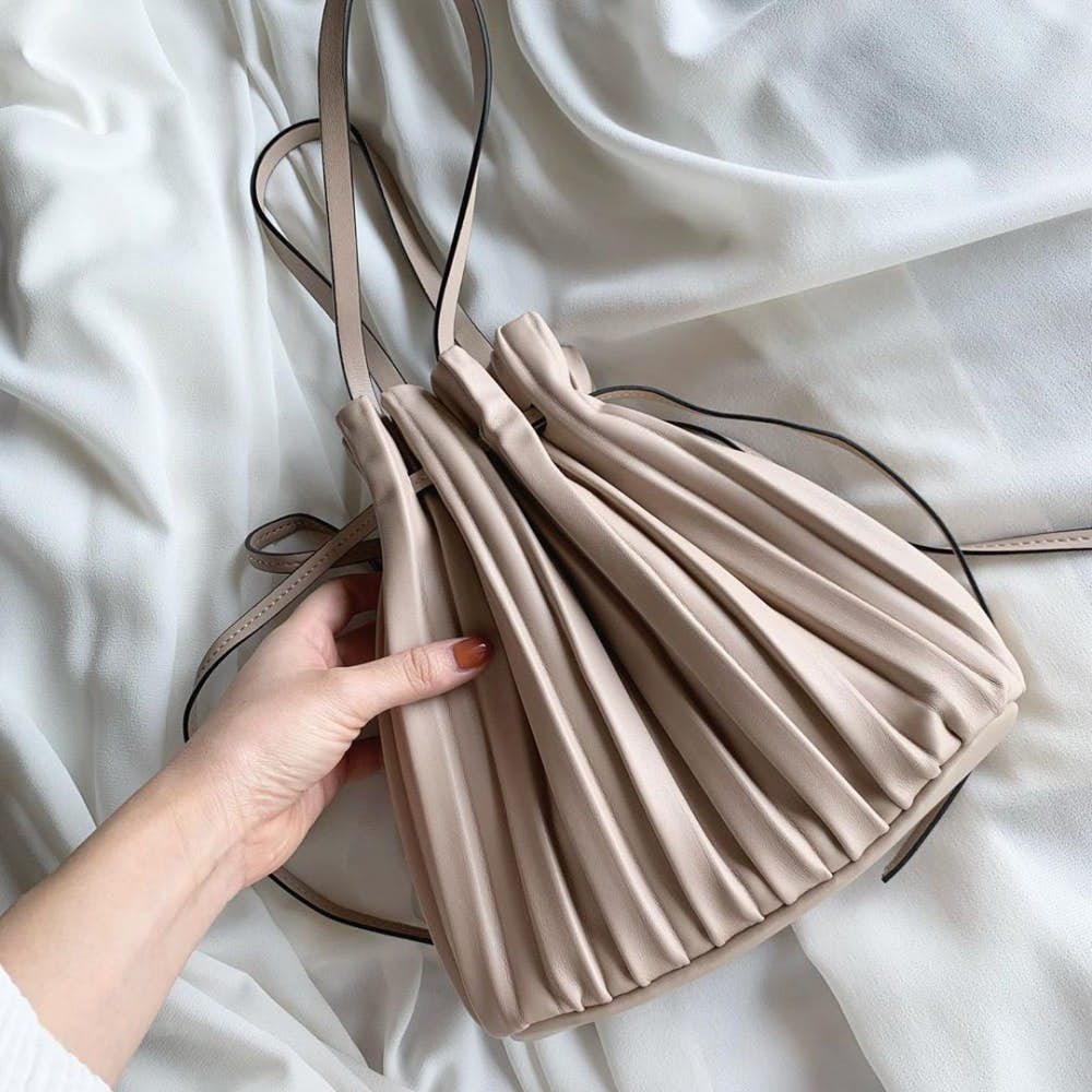 近期ZARA有一款「百摺水桶包」在香港、日本、台灣都大受歡迎,不少女生包色購買,全因設計超仙的~絕對能讓你整個穿搭的氣質提升呢!可愛的水桶包設計,加上細褶,縮口設計,小編也想買呢!