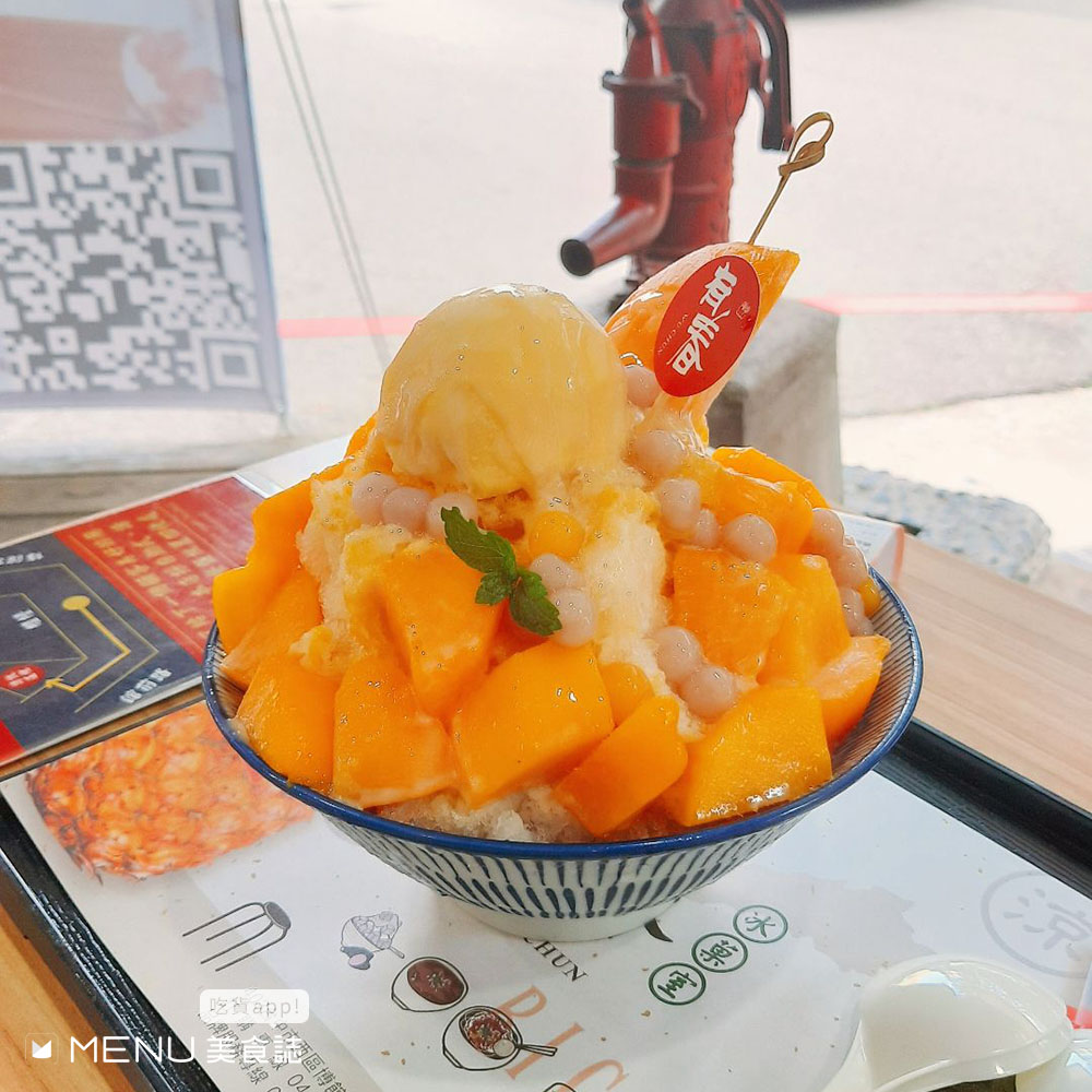 台南老字號水果店!選用上等愛文芒果,擺上一球有著雪酪口感的冰淇淋,再淋上芒果甜漿,果香、甜度、口味都沒有讓人失望!