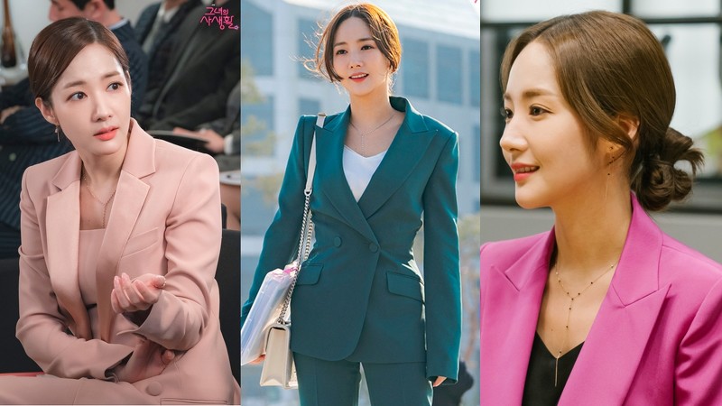 朴敏英去年與金材昱搭擋演出《她的私生活》,劇中她飾演一名畫廊策展人,為了從造型埋下角色性格的線索,在劇中她常以職場正式穿搭現身,例如avou avou的招牌彩色成套西裝,再以內搭細肩帶小可愛、白色 T-Shirt 、同色系平口上衣等,營造出俐落卻不至於太過嚴肅的風格,這樣的穿搭小技巧很適合喜歡西裝的女孩們偷偷學起來!