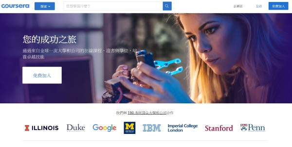 與各國190多所頂尖大學和公司合作,Coursera是全球最大MOOCs國際學習平台,有各項英文、電腦專業等課程,平台上也提供免費的中文教學,想再進修或轉職者可以從中尋找自己有興趣的新課程。