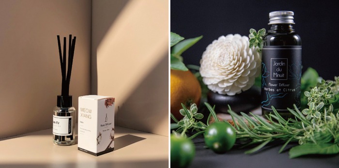 左: 缪香 MEOWXIANG|擴香精油瓶 || 右:Jardin du Minuit|擴香花組