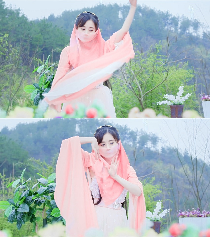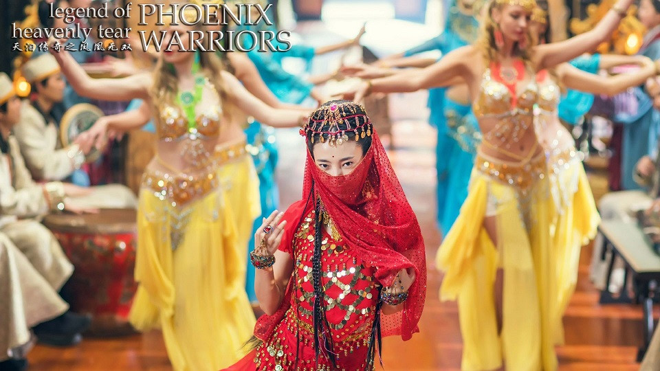 王麗坤在《天淚傳奇之鳳凰無雙》的穿著異域造型跳舞也很經典,鮮紅的亮片面紗搭配垂墜舞裙,媚惑力十足,那眼神真的會勾人耶!