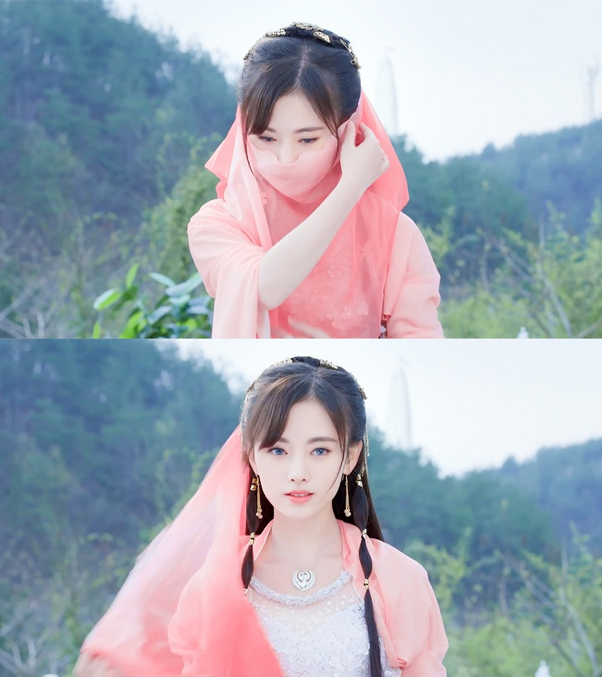 鞠婧禕在《九州天空城》的異域造型也讓人印象深刻,尤其是她跳舞那場戲,超級媚,異域風的造型最重要的就是面紗,總是有股神秘感。