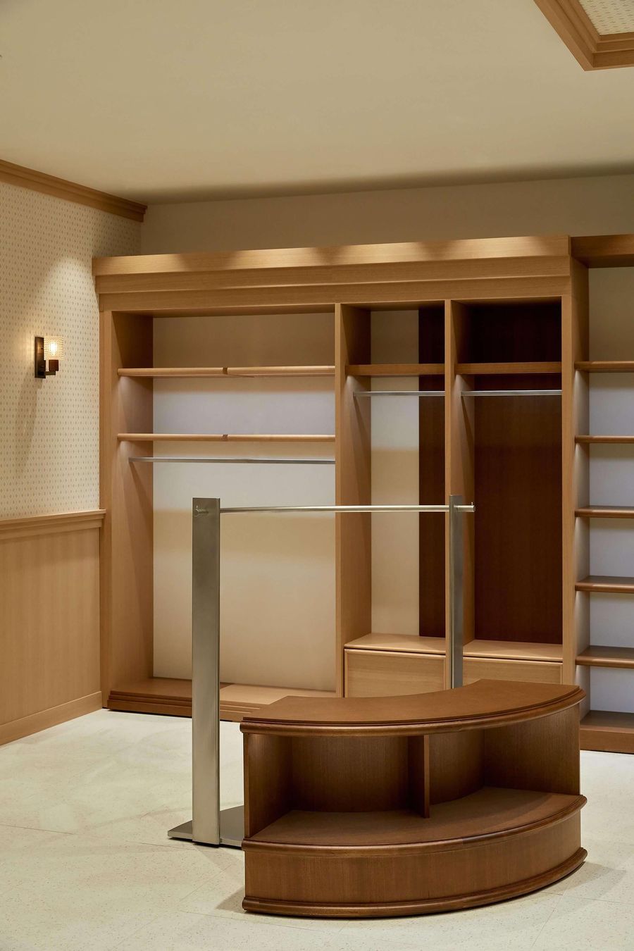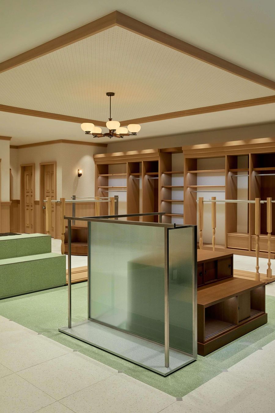 此外,設計團隊針對展示店裝設許多間接燈光,以便讓空間傳達出時髦優雅的味道,同時避免大量的70年代元素令店面感覺太過老氣。值得一提的是,店內服裝的更新也是設計的一部分,考量到BEANPOLE多半進駐購物中心或百貨商場,於是在牆面上最大程度的進行佈置,而在店內中央位置則擺放老家具,營造感性的視覺效果。
