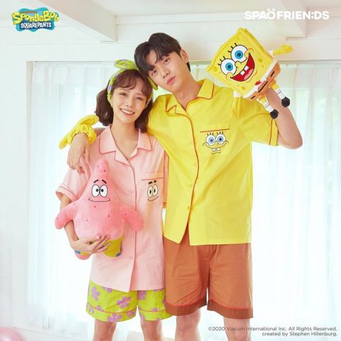 韓國SPAO推出海綿寶寶睡衣系列~超適合用作參加party的!情侶裝也可以~