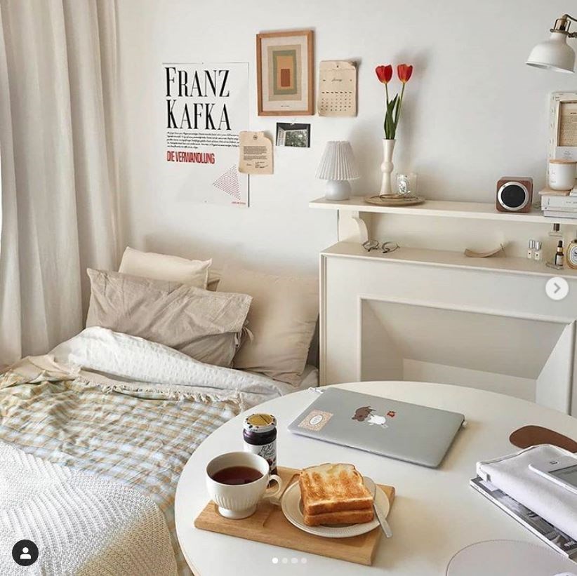 此帳號同樣來自韓國,內容如帳號 one room make 意思,主要分享不同網友的臥房空間佈置,比較貼近租屋族的生活空間,對於佈置新手來說也是個很好的參考。幾乎每個臥房都透過一致的色系、較容易取得的家具,替不太能大興土木的小房間帶來溫暖或創造風格。