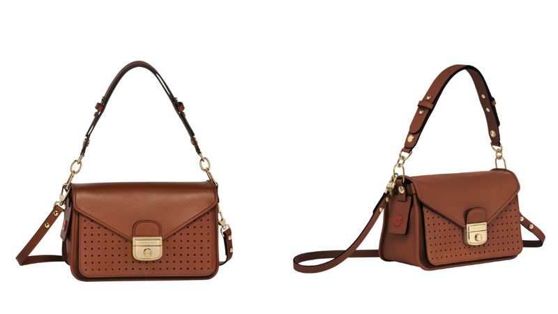 有著象徵Longchamp靈魂的Mademoiselle Longchamp系列,擁有結構分明的包型和圖案設計,採用細緻小牛皮革打造成信封式的外觀,最特別的莫過於包身上金色的Longchamp金屬釦飾標誌,以及手袋上的鏤空設計,為整體增添獨特性。寬版提把提供肩背功能,隨包還附上可拆卸長肩帶可以斜背。除了百搭的大地色系,另外還推出經典黑色、酒紅色共3種色選。