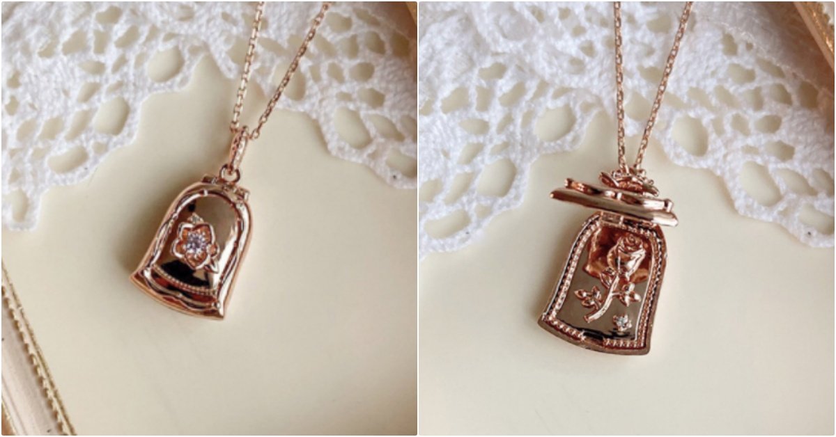 特別是這款「貝兒玫瑰項鍊」,神還原故事中玻璃罩裡的永生紅玫瑰,掀起玫瑰金的項鍊蓋子,裡面真的藏著一朵綻放中的玫瑰,一戴解開詛咒!