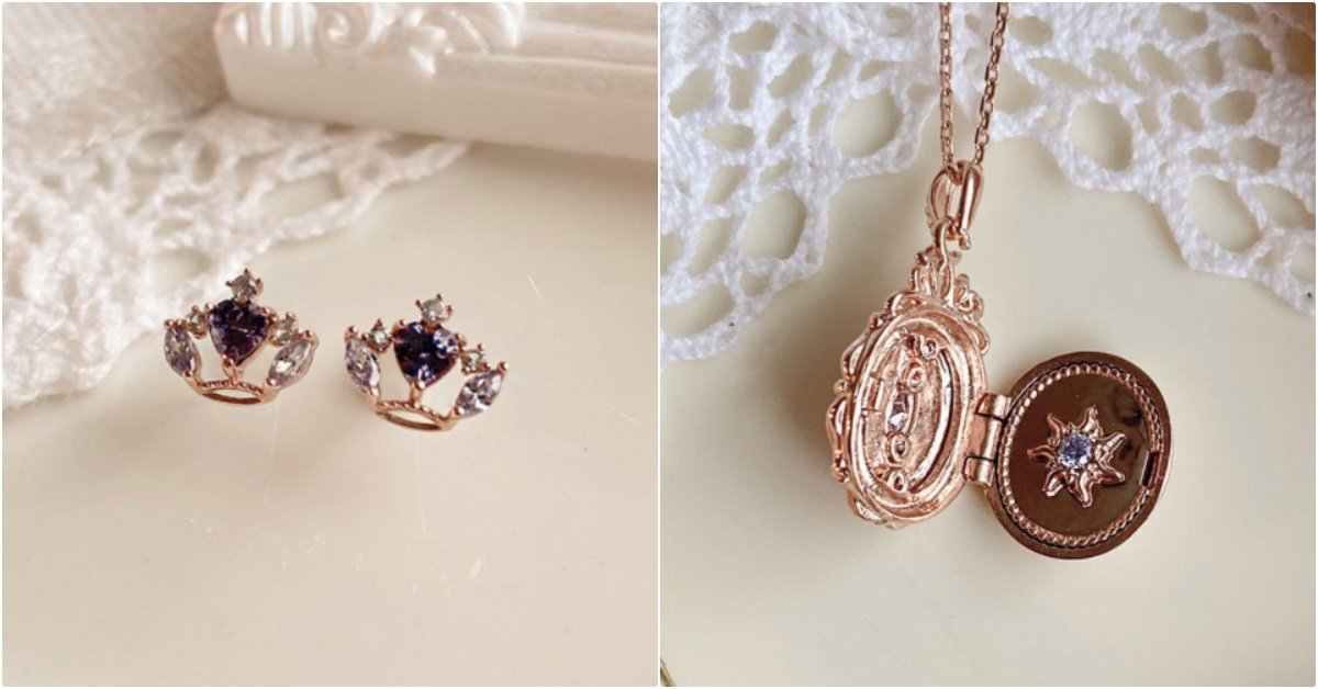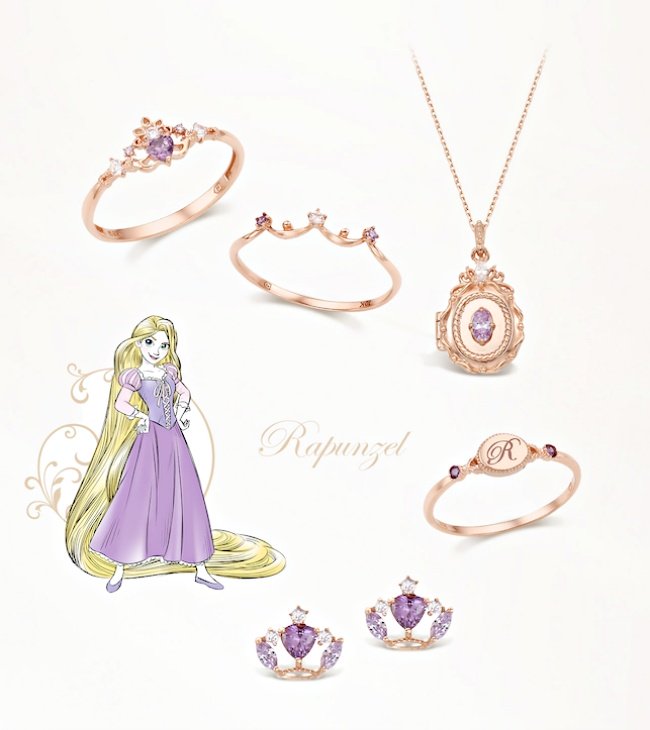 《魔髮奇緣》中總是穿著紫粉色洋裝的樂佩公主,變身成一顆顆閃耀紫色光芒的絕美寶石,搭配唯美的玫瑰金設計,一整組聯名飾品都美到窒息,「樂佩限定項鍊」中更藏用心小細節,一翻開蓋子…魔法太陽花馬上顯現,戴上也能擁有不老魔法(笑)!(這系列連包裝都好童話)