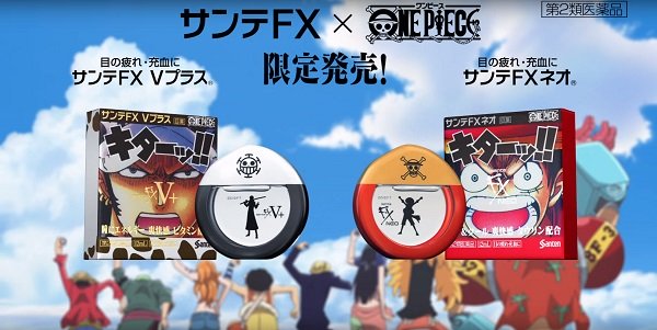 參天製藥眼藥水常與多部動漫作品推出聯名合作,像是《航海王》、《進擊的巨人》等。