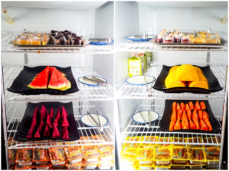 大廳中間後方就是各種火鍋料和蔬菜的冷藏櫃,請自己取用,但也不要拿太多