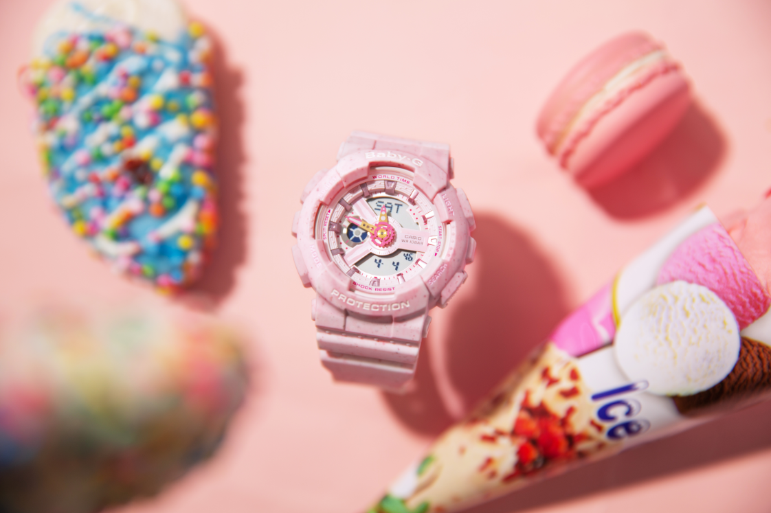 BABY-G 選用了暢銷系列 GA-110 作原型,將冰淇淋的色彩和質感,整合到了手錶的創意設計中。