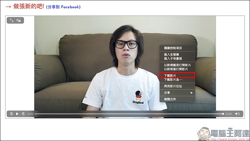 若想將影片儲存下來,也可右鍵點擊「下載影片」:
