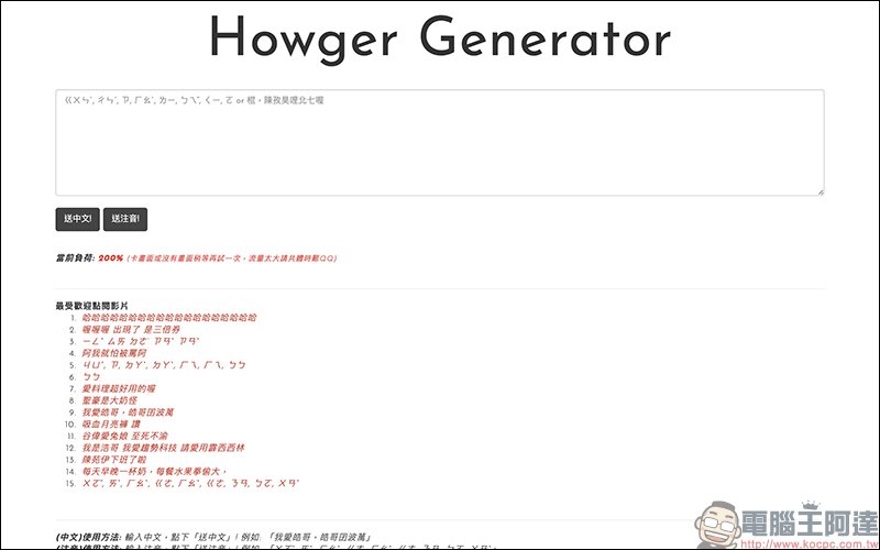 最近,除了《How朋友》 LINE 聊天機器人可以自動產生 HowHow 的語音訊息,如果想製作 HowHow 唸出訊息的影片,但不想自己動手剪輯嗎?現在由 Orange Tsai 製作了一個「How哥產生器」,只要在文字框輸入中文字或注音拼音,「How哥產生器」就會自動產生一段 HowHow 讀訊息的影片。