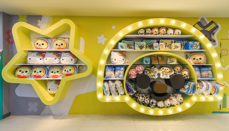 商品展示區以OPEN大臉及魔法棒的星星為造型櫥窗,且考量區域特性,推出適合年輕人及旅客喜愛的週邊商品。