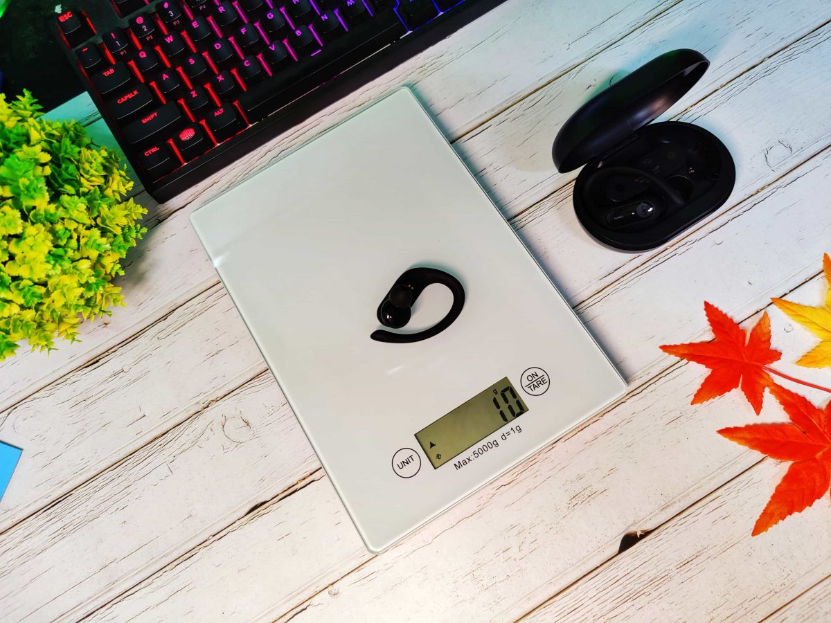 第一次拿起 Funcl Pro 那一刻,一定會對那碩大的充電艙印象深刻,以手算很大的筆者來說,也僅只能剛好掌握住耳機充電艙。實際測量後可以看到耳機單耳約 10 克,含充電艙重量約為 100 克,整體重量是筆者目前使用過最大的,對於攜帶上可能需要放背包或穿較寬鬆的褲子。