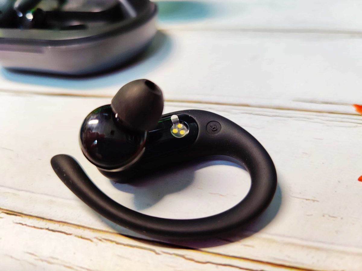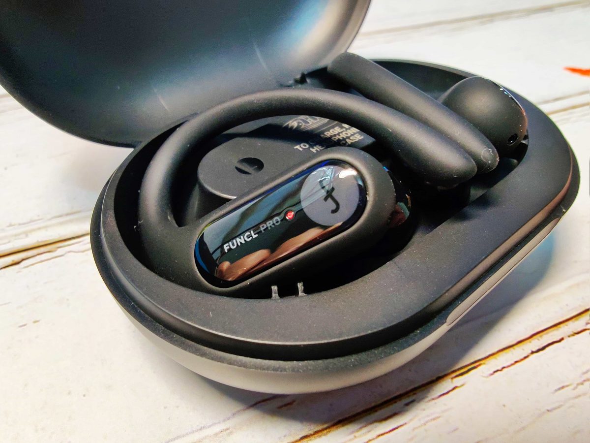 「 Funcl Pro 」耳機充電艙設計上較為保守,純黑的塑料外殼,中間有一個品牌的 Logo。打開充電艙之後可以看到耳機本體,可以看到廠商直接預設這款耳機會運動用,因此將內部空間設計直接保留耳掛空間。值得稱讚的是,「 Funcl Pro 」既可以當運動耳機使用,也可以將耳掛卸下作為一般真無限藍牙耳機使用。