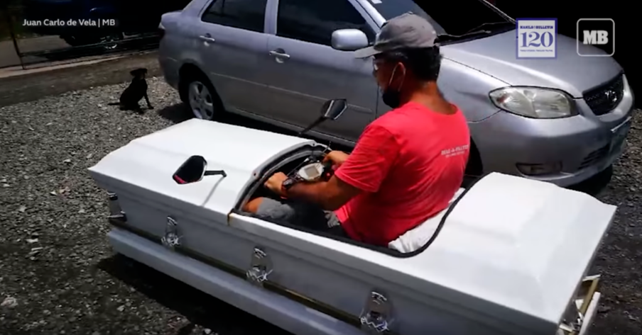 住在菲律賓宿霧的 Gabriel Berendo 擔心當地疫情擴大,別出心裁的製作了一個移動式棺材,想要用黑色幽默的方式告訴大家盡可能多待在家裡,不然感染到武漢肺炎就要進棺材。