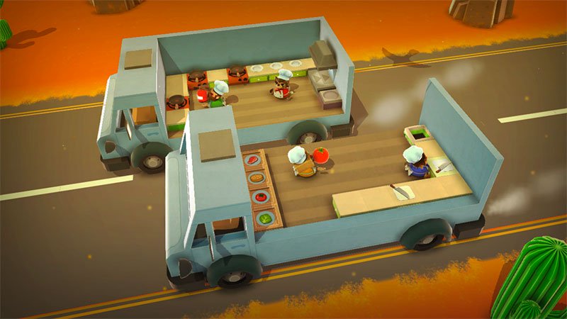 《Overcooked》身為系列中的首部作品僅支援本地多人合作模式,允許最多 4 個玩家各自操縱一個角色完成關卡,或者進行對決來比拼最終分數高低;同時在遊戲中也允許單機玩家切換操控 2 個角色來完成遊戲。