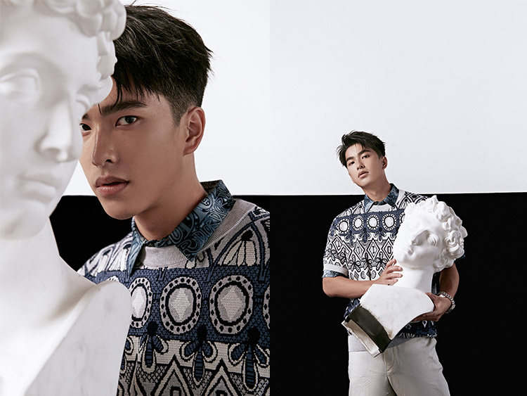 ▲ 花紋襯衫:Dior/藍色長褲:BOSS/眼鏡:KLASSIC/手錶:CITIZEN