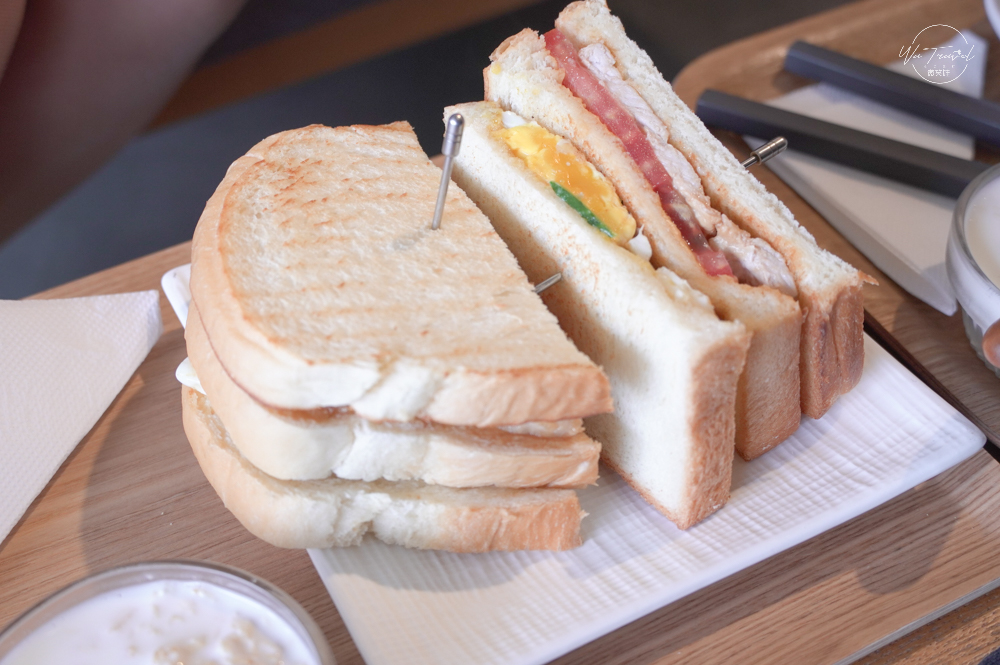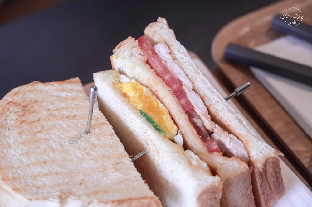是屬於鹹食,但是也是偏較無油健康的食材,吐司氏鬆軟,有抹上花生醬跟美乃滋,讓帕尼裡的味道與其他家咖啡廳有所差別,而一般對帕里尼的認識都會以為乾乾扁扁,沒有想到小森咖啡的帕里尼是鬆軟又帶一點酥脆,內部的餡料也很豐富,夾帶小森咖啡自製的醃製煎烤豬排還有蛋跟新鮮番茄與黃瓜,吃起來很清爽好吃,也非常夠味。