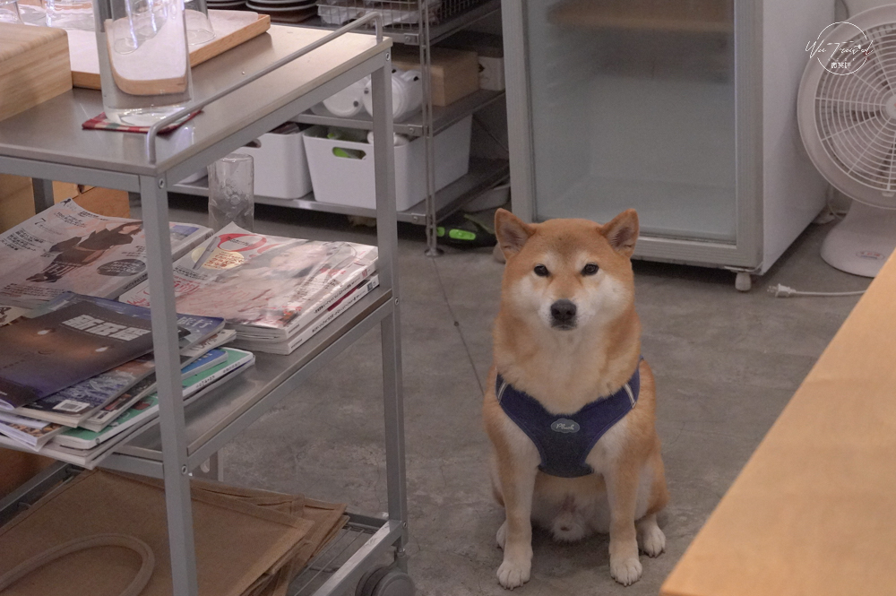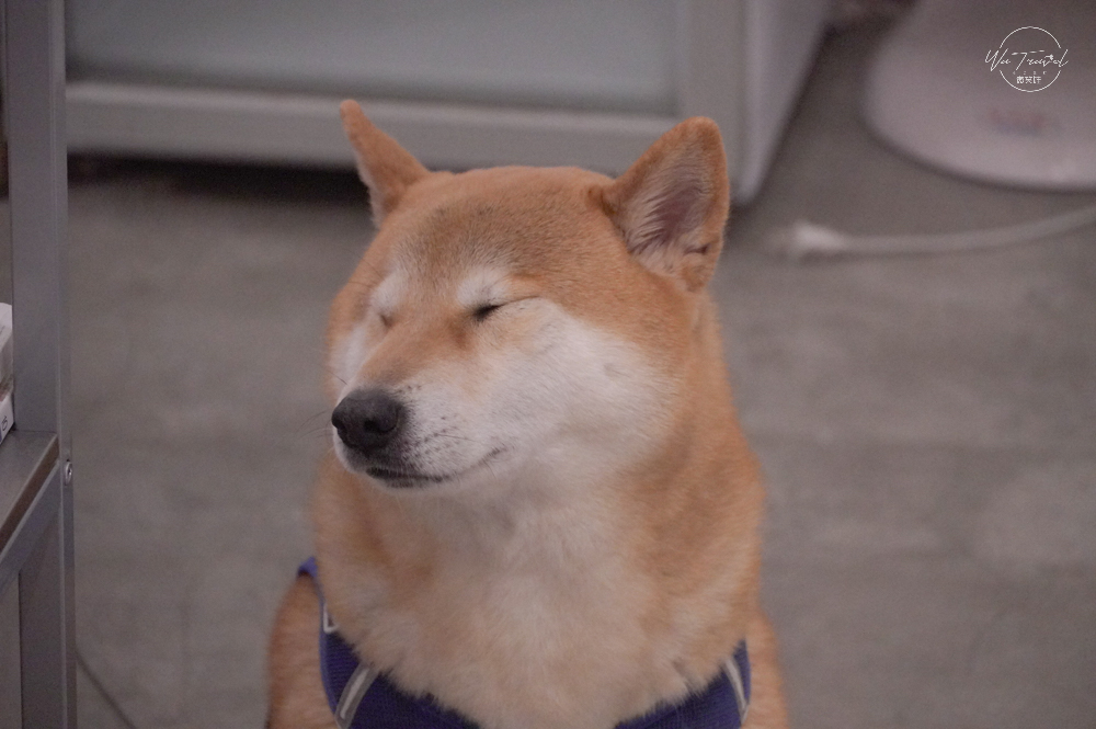 可愛店狗柴柴他很怕人喔,要跟他保持距離!