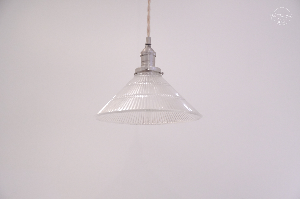 轉彎牆角的位置搭配的是透明燈飾,與白色牆面呼應更顯得俐落乾淨。