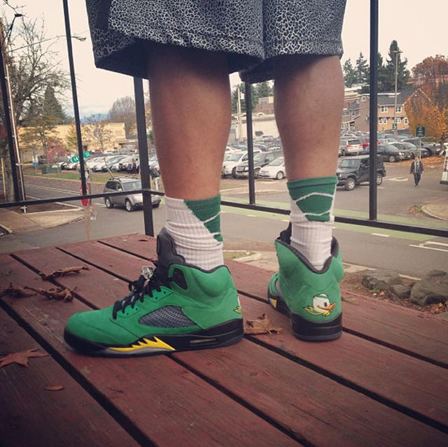 ▲ Air Jordan 5 Oregon Ducks (2013)上腳圖