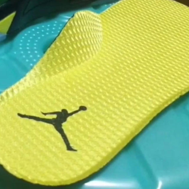 其他細節包含AJ 5一貫的果凍大底、Air-Sole開窗式氣墊、黑色鞋帶扣等等,曝光的照片中也顯示了鞋墊應為鮮黃色,並帶有標誌性的Jumpman飛人圖案。