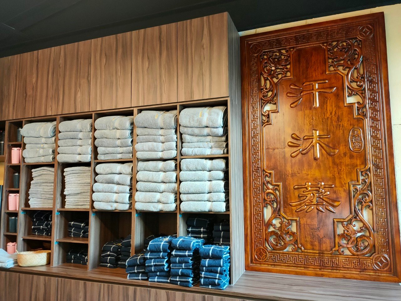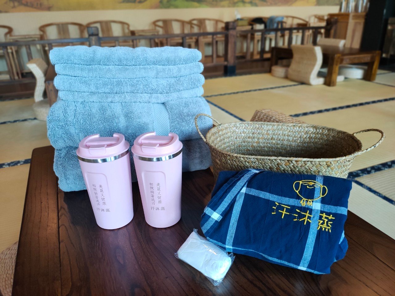 店家會為每個來到這裡的客人準備日式浴衣、浴巾、毛巾、不銹鋼保溫杯與一次性紙褲,更衣室有提供卸妝油、吹風機等用品,場地也十分乾淨、舒適。