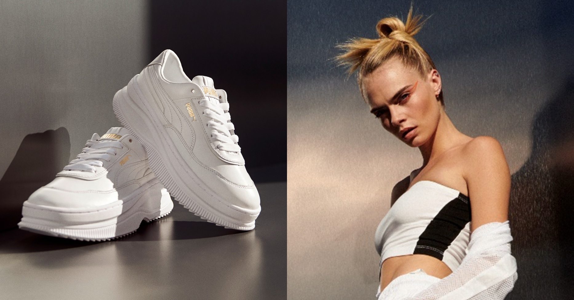 2020 年初,PUMA 重磅祭出全新厚底美學 2.0 – PUMA DEVA,以新龐克女力出發,霸氣為女孩們的每一個步伐加足厚實力量,為每一次的華麗現身帶來震攝全場的絕美氣勢,推出後旋即造成全球時尚圈的熱烈迴響,在社群平台上的討論度更是高居不下,強勢躍身 PUMA 當家熱銷單品。邁入六月熱暑之際,PUMA 更加碼祭出 PUMA DEVA White 裸白限定新色,由國際超模 Cara Delevingne 以一襲極淨無暇運動裝束絕美現身。