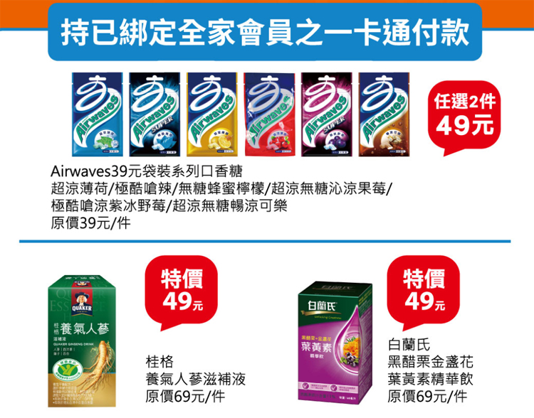 ●需先將全家會員綁定一卡通,可至全家會員專區、全家 APP 輸入卡號綁定、或透過門市內 Fami Port 感應綁定後,方可享有上述優惠。