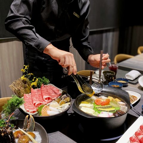 「食令shabu」同樣也提供桌邊烹煮食材的服務,專業的服務人員會替客人下菜盤以及烹煮海鮮,肉品則請客人自行涮煮,海鮮的部分則會協助將如蝦子、螃蟹、龍蝦類等處理去殼,太適合想邊用餐、邊聊天的人細細品嘗!