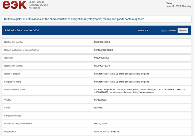 根據之前的報導,華碩 ROG Phone 3 電競手機的跑分已現身 Geekbench 數據庫,同時也有人在 Wi-Fi Alliance 的認證網站上找到了相同型號的資料。而近期有款疑似為 ASUS ROG Phone 3 的產品也通過 EEC 認證,同時根據線上零售商列出的兼容配件,也間接證實該型號就是 ROG Phone 3 ,相信距離正式發表的時間也即將到來。